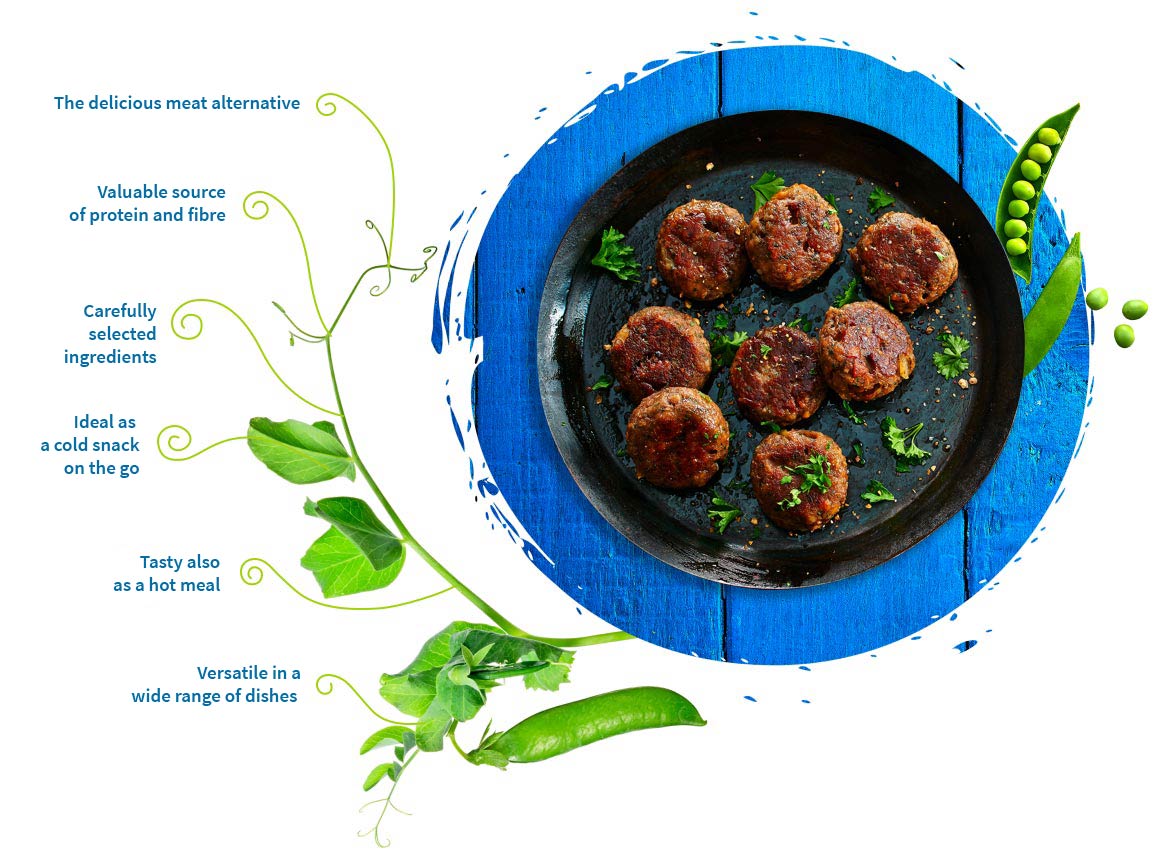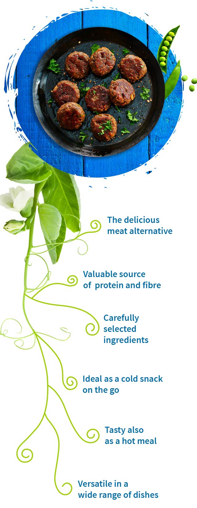 With The Good One, we want to make it easy for you to enjoy a completely meat-free diet or reduce your meat consumption as part of a flexitarian lifestyle. Our products are based on pea and wheat protein. High in valuable protein and fibre, they help to support a balanced diet. So you could say that The Good One is twice as good! It tastes great and is good for you – and our planet.